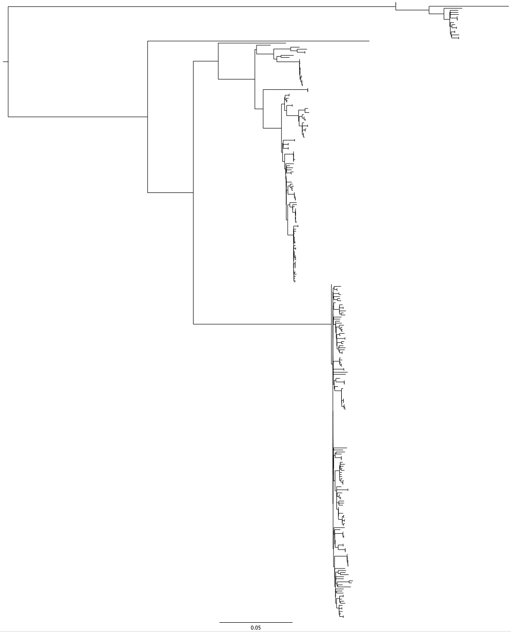 - The depth of coverage of the new strains, if this is low, you will have a higher number of ignored positions and your core genome will be smaller, which will effect the tree.