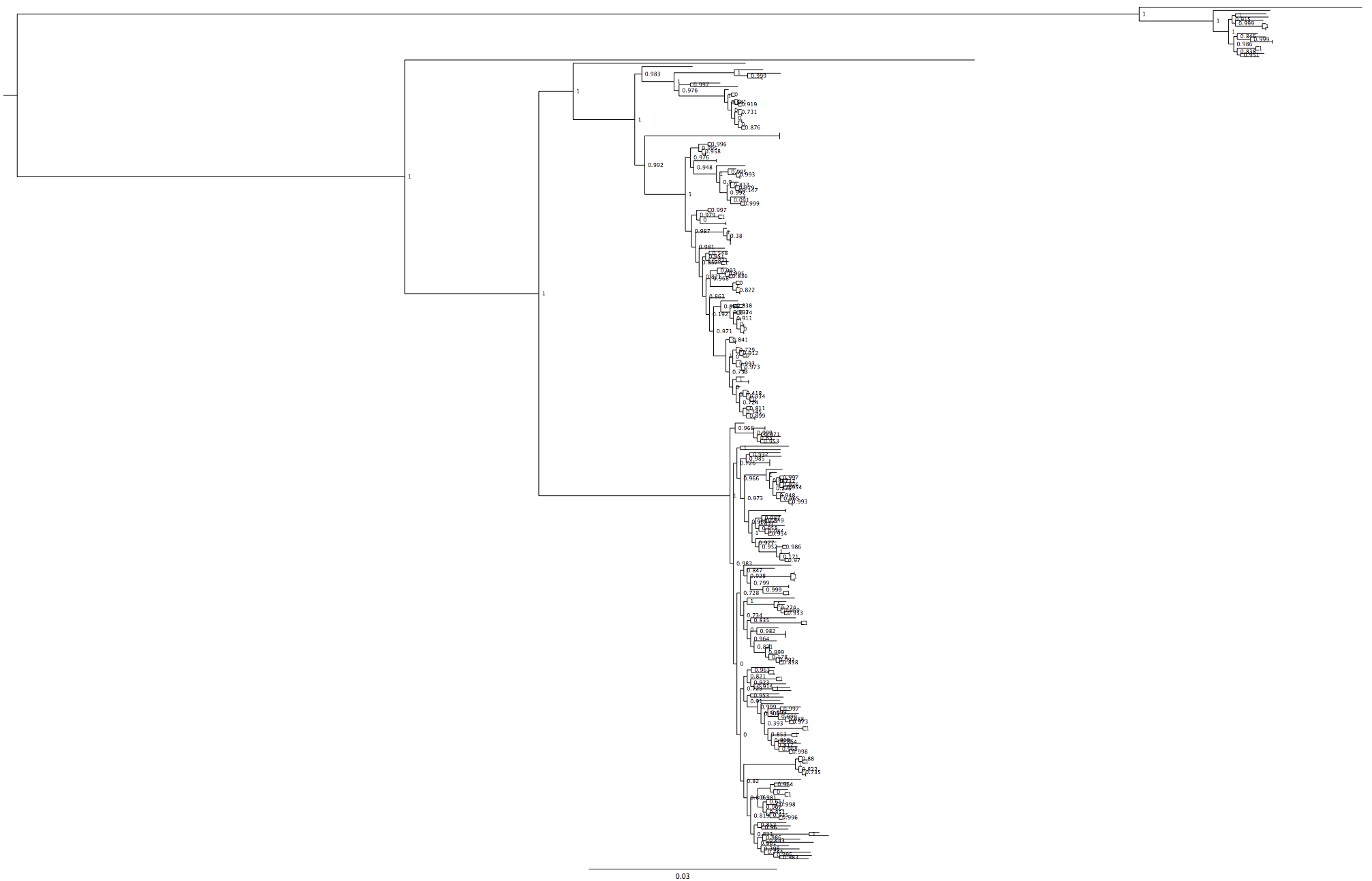 Fig4: Ta da! Correct tree structure, including the new strains (not the ‘cat’ strains)